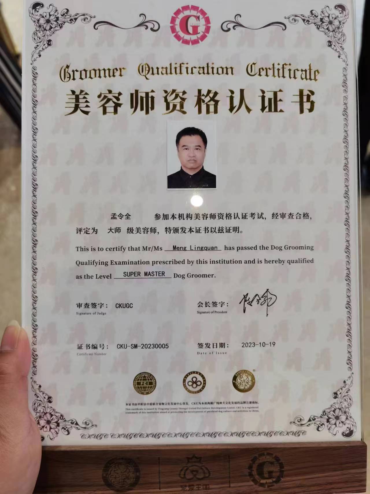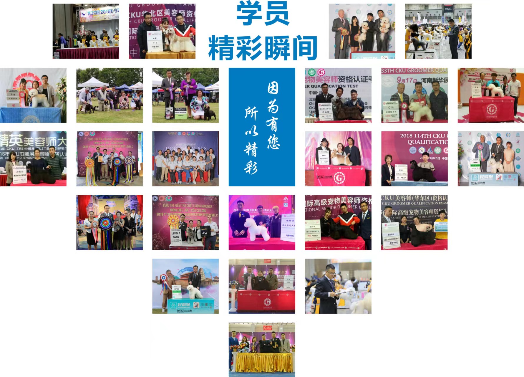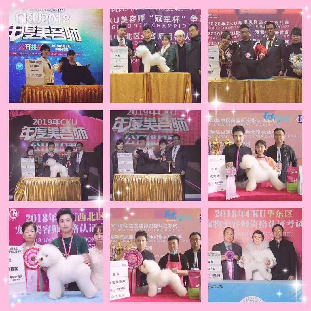 CKU教師級(jí)美容師(河南唯一一個(gè));CNKC導(dǎo)師級(jí)美容師(全國(guó)唯一一個(gè));CKU A級(jí)牽犬師 ; 中國(guó)CKU首位應(yīng)邀馬來(lái)西亞MKA專(zhuān)業(yè)講座比熊老師 及寵物美容評(píng)審委員